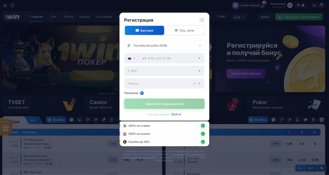 Букмекерская контора 1 win предлагает своим клиентам широкие регистрационные возможности. Новый пользователь может выбрать один из таких способов: