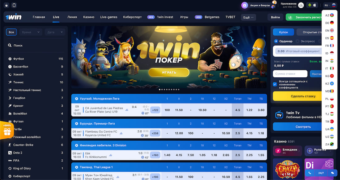 Букмекерская контора 1win представляет собой платформу, позволяющую совершать ставки на разные спортивные события. Отдельного внимания заслуживает ширина линии, которая включает: